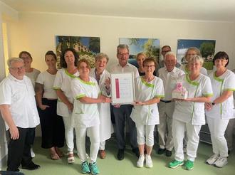 Frau Dr. Moreno beglückwünschte stellvertretend für die KV RLP die praktizierenden Ärzte Frau Jessel und Dr. Feindel mit einer Urkunde und einem Präsent zur Praxiseröffnung.