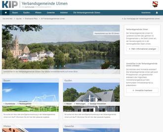 Über ein Link auf der Homepage der Verbandsgemeinde Ulmen www.ulmen.de oder unter der http://www.kip-rp.de/vg-ulmen gelangen Sie auf das Immobilienportal der Verbandsgemeinde Ulmen. Dort haben Sie als Privatperson oder Gewerbetreibender die Möglichkeit, Wohnungen, Häuser, Grundstücke und sonstige Immobilien in der Verbandsgemeinde Ulmen zu suchen, zu inserieren und zu verwalten.