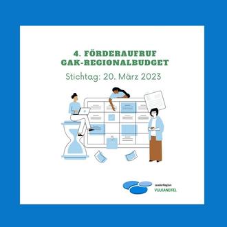 Die Lokalen Aktionsgruppe (LAG) Vulkaneifel hat einen neuen Förderaufruf zur Projekteinreichung für das „GAK-Regionalbudget“ beschlossen. In der aktuell noch laufenden LEADER-Förderperiode 2014 – 2020 ist es bereits der 4. Aufruf zur Einreichung von Vorhaben im Zuge des „Regionalbudgets“.