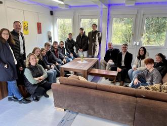 Erfolgreicher Einsatz für einen Jugendraum: Jugendliche und Vertreter des Gemeinderates gaben dem Bundestagsabgeordneten Marlon Bröhr (6. v. r.) und Landtagsabgeordneten Jens Münster (4. v. r.) sowie Stiftungsvorstand Jan Holze (5. v. r.) einen Einblick in den neuen Jugendraum und das Engagement in Hambuch