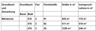 Von der Maßnahme ist folgendes Grundeigentum betroffen: