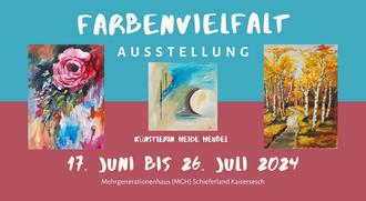 Inspiriert durch die private Initiative von Heide Heubel findet im Mehrgenerationenhaus (MGH) Schieferland Kaisersesch die Ausstellung Farbenvielfalt von Montag, 17. Juni 2024 bis Freitag, 26. Juli 2024 statt.