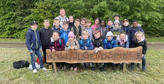 Am 17.05.2022 dieses Jahres fanden die Waldjugendspiele in Binningen statt. Beide dritten Klassen der Kurfürst-Balduin-Grundschule starteten am Sportplatz in Binningen zusammen mit 300 anderen Drittklässlern ihren Rundlauf.