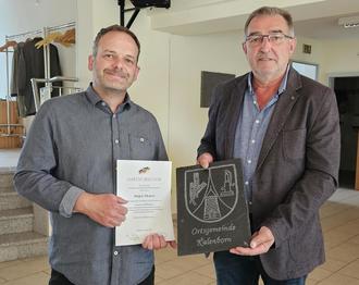 Im Anschluss überreichte der Beigeordnete der Verbandsgemeinde Kaisersesch, Thomas Welter, die Ehrenurkunde des Gemeinde- und Städtebundes Rheinland-Pfalz für langjährige kommunalpolitische Tätigkeit an den Ortsbürgermeister Jürgen Thomas (25 Jahre) sowie an Monika Thomas (20 Jahre) und bedankte sich für ihr ehrenamtliches Engagement. Darüber hinaus erhielt Jürgen Thomas noch eine Schieferplatte mit dem Wappen der Ortsgemeinde.