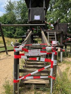 Ich appelliere an Euch und alle Besucher des Spielplatzes den Kletterturm nicht mehr zu betreten. Die anderen Spielgeräte und der Sandkasten im Umfeld des Kletterturm können weiterhin ohne Gefahr genutzt werden. Der Spielplatz In den Peschen ist komplett uneingeschränkt nutzbar.