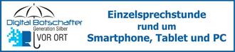 Rund ums Internet gibt es eine Menge zu lernen und zu erfahren und ständig tauchen neue Fragen auf. Umso wichtiger ist ein Ort, an dem diese Fragen ihren Platz haben - und beantwortet werden. Dieser Ort ist das Mehrgenerationenhaus (MGH) in Kaisersesch. Unsere Digitalbotschafter stehen an Ihrer Seite und gemeinsam versuchen wir, Lösungen zu finden und Ihre Fragen zu beantworten. Haben Sie ein Wunschthema, z. B. Ticket online buchen, Messenger Dienste, Spiele-App, online einkaufen u. a., dann geben Sie diesen Wunsch bitte bei Ihrer Anmeldung an.