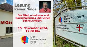 Wir laden Sie herzlich ins Mehrgenerationenhaus (MGH) Schieferland Kaisersesch zur Lesung „Die Eifel! Heiteres und Nachdenkliches über einen Sehnsuchtsort!“ von Rainer Ningel ein.