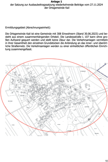(1) Sämtliche zum Anbau bestimmte Verkehrsanlagen des Ortsgemeindegebietes bilden als einheitliche öffentliche Einrichtung das Ermittlungsgebiet (Abrechnungseinheit).