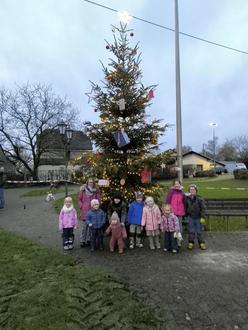 Am 29.11. wurde auf unserem Dorfplatz wieder der Weihnachtsbaum geschmückt. Auch in diesem Jahr haben die Kinder mit viel Freude und Kreativität zahlreiche kleine Geschenke und Anhänger gebastelt, die sie gemeinsam an den großen Tannenbaum hängen durften.