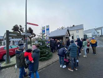 Am ersten Adventssonntag lud Binningens Ortsbürgermeister Günter Urwer die jüngsten Mitglieder der Gemeinde sowie ihre Eltern zum Dorfplatz in der Ortsmitte. Die Kinder konnten selbstgemalte Bilder mitbringen, die vor Ort zum Schutz vor der Witterung laminiert und anschließend an einen Tannenbaum gehängt wurden. „Nachdem die Idee im vorherigen Jahr so gut angenommen wurde, wollten wir das Konzept in diesem Jahr fortsetzen. Die Kinder haben große Freude, wenn sie ihr eigenes Bild und das ihrer Freunde am Weihnachtsbaum sehen“, erklärt Urwer. „Da auch nun wieder rund 35 Kinder der Einladung gefolgt sind, könnte hier vielleicht eine kleine Tradition entstehen.“