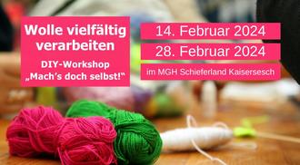 Unter dem Motto „Gemeinsam Handarbeiten macht Freude und Freunde“ bietet Frau Helga Heidkamp-Kurtze alle 14 Tage mittwochs (in den ungeraden Kalenderwochen) im Bistro des MGH Schieferland Kaisersesch einen DIY-Workshop (Do-It-Yourself-Workshop) zum Thema Wolle an. Gerne gibt sie ihr Wissen und ihre Erfahrungen rund um die vielfältige Verarbeitung des Naturproduktes Wolle an Sie weiter und freut sich auf Ihre Teilnahme!