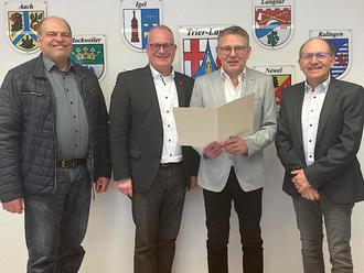 Unser Bild zeigt v.l.n.r. Personalratsvorsitzenden Armin Hunsicker, Bürgermeister Michael Holstein, Michael Grundheber und Fachbereichsleiter Matthias Wagner.