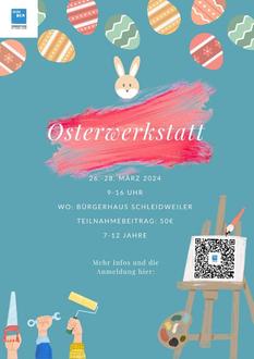 Vom 26. bis 28. März kannst du neben verschiedensten Holz- und Bastelarbeiten auch an einem großen gemeinsamen Projekt für die Ortsgemeinde Schleidweiler werkeln.