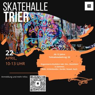 Am 22.04.25 geht es von 10-13 Uhr in die Skatehalle Trier. Vor Ort können BMX, Scooter und Skateboards ausgeliehen werden.