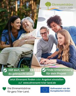 Auf der Website des Ehrenamtsbüros Trier-Land finden Vereine, Organisationen sowie interessierte Bürgerinnen und Bürger vielfältige Möglichkeiten, sich zu informieren und aktiv einzubringen.