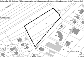 Der Geltungsbereich des FNP-Änderungsverfahrens ist identisch mit der Abgrenzung des Geltungsbereichs des Bebauungsplans „Seniorenresidenz Zemmerer Straße“ und kann dem beigefügten, nicht maßstäblichen Lageplan entnommen werden.