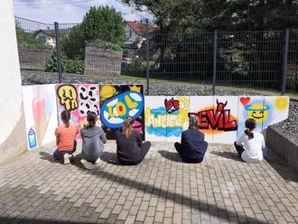 Mit einer Menge neuer Farbe machte eine unserer Spray-Aktionen Halt in Franzenheim. Zusammen mit der Jugendpflege und unserem Graffiti-Künstler Noah Elwert konnten wieder einige Jugendliche sich Motive ausdenken und an der Spray-Flasche versuchen. So bekamen alle die Chance sich künstlerisch auszudrücken. Im Zuge dessen kamen ein paar himmlisch schöne und teuflisch gute Kunstwerke dabei heraus. Die Aktion war mit 6 Teilnehmenden ausgebucht.