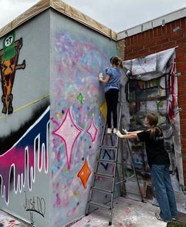 Ende Mai durften Jugendliche auch in Rodt ihre kreativen Ideen an die Wand sprühen. Gruppenweise überlegten die jungen Menschen, welche Motive die Gemeindebücherei schmücken sollen. Dabei sind vielseitige und schöne Graffitis entstanden.