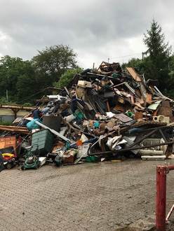 Solche Müllberge waren nach der Flut an vielen Stellen an Sauer und Kyll zu sehen. Bereits innerhalb der ersten Wochen nach der Flut waren rund 40.000 Kubikmeter Sperrabfall, Sondermüll und Elektroschrott kostenfrei an den Stellen des Zweckverbands Abfallwirtschaft abgegeben worden.