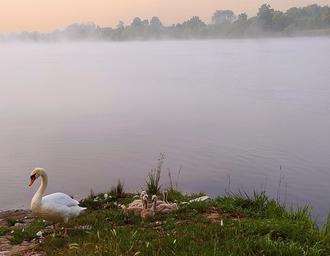Vielen Dank an Heike Görgen aus Igel für das Foto der Schwanenfamilie beim Sonnenaufgang an der Mosel bei Igel.