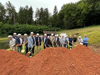 Trier-Land. Zum Glück wird die neue Gruppenkläranlage in Daufenbach nicht in „Handarbeit“ errichtet, wie das Bild vermuten ließe. Die Gäste aus Kommunalpolitik, Verwaltung und am Bau beteiligter Baufirmen hatten die Spaten zur Hand genommen, um mit dem symbolischen ersten Spatenstich eine Baumaßnahme zu starten, deren Investitionsvolumen in der bisherigen Geschichte der Verbandsgemeinde Trier-Land einzigartig ist.