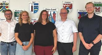 Bürgermeister Michael Holstein hieß die neuen Fachkräfte für sozialpädagogischer Beratung an Grundschulen willkommen. Begleitet wurden sie von Teamleiterin des Bereichs „Soziale Arbeit an Schulen“, Sybille Ulbrich (2.v.l.), und Dirk Marmann, Stellv. Kreisgeschäftsführer des DRK – Kreisverband Trier-Saarburg e.V.. Im Bereich der Verbandsgemeinde Trier-Land hat das Deutsche Rote Kreuz – Kreisverband Trier-Saarburg e.V. die Trägerschaft für die sozialpädagogische Beratung.