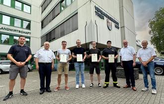 Bürgermeister Michael Holstein und Hermann Hurth, Stellvertretender Kreisbeauftragter des Malteser Hilfsdiensten, freuten sich, den neuen First Respondern die Beauftragungsurkunde überreichen zu können. Die schnelle medizinische Notfallhilfe vor Ort leisten künftig Yannik Backes, Florian Krass, Max Kraushaar und Sven Richtstein.