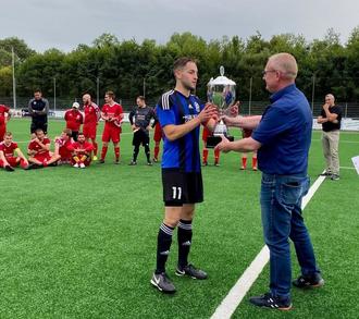 Den Pokal überreichte Bürgermeister Michael Holstein dem Kapitän des siegreichen Teams, Marvin Roth.