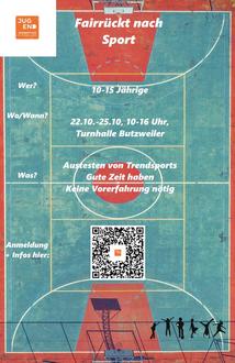 Stattfinden wird das Ganze von Dienstag dem 22.10. - Freitag 25.10. in Butzweiler in der Turnhalle von 10-16 Uhr für 10-15 Jährige. Die Teilnahmegebühr sind 40€, inklusive Verpflegung. Ein Ausflug zu einer Sportstätte ist ebenfalls mit darin.