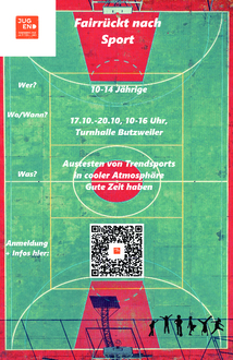 Für den Teilnahmebeitrag von 30€ seid ihr dabei. Mitinbegriffen ist ein täglicher Mittagsimbiss und villeicht ja auch ein kleiner Ausflug;) Stattfinden wird das Ganze in der Turnhalle in Butzweiler bzw. in der direkten Umgebung. Die Teilnehmenden können gerne ab 9 Uhr gebracht werden zur Betreuung; das Programm geht dann von 10-16 Uhr. Für mehr Infos, scannt den QR-Code oder besucht jugendpflege-trier-land.de.