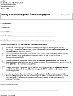 Die jeweiligen Widersprüche sind beim Einwohnermeldeamt der Verbandsgemeindeverwaltung Trier-Land, Gartenfeldstraße 12, 54295 Trier, einzulegen. Der Widerspruch gilt für die Zukunft. Es ist nicht notwendig, ihn jährlich zu beantragen.