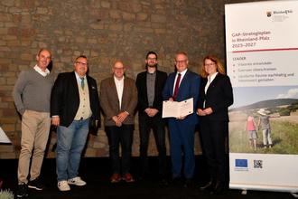 Am 8. November überreichte Andy Becht, Staatssekretär im Landwirtschaftsministerium Rheinland-Pfalz, in einem feierlichen Akt im Hambacher Schloss die Urkunde zur Anerkennung für die neue EU-Förderperiode 2023 - 2029 an die Verantwortlichen der Region Moselfranken. Damit verbunden ist die Genehmigung der LEADER-Entwicklungsstrategie für die kommenden sieben Jahre, die Moselfranken gemeinsam mit seiner Nachbarregion Miselerland aus Luxemburg erarbeitet hat.