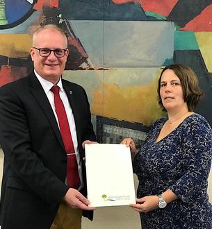 Bürgermeister Holstein übergab Katja Vernazobres das Bestellungsschreiben zur Gleichstellungsbeauftragten der Verbandsgemeinde Trier-Land.