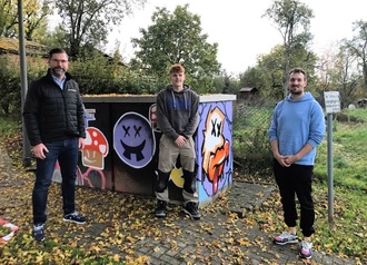 „Es ist schön zu sehen, dass sich hier junge Menschen mithilfe ihrer Motive frei auszudrücken können“, konstatierte Jugendpfleger Johannes Weier. Auch Graffitikünstler Noah Elwert befand: „Die Jugendlichen haben das echt gut gemacht und hatten sichtlich Spaß. Die Motive sind auch echt schön geworden“. Alles in allem also eine gelungene Aktion. In diesem Sinne bedankt sich die Jugendpflege bei der Gemeinde, dem Verteilnetzbetreiber Westenergie für die finanzielle Unterstützung, Graffiti-Künstler Noah Elwert und natürlich den Teilnehmenden.