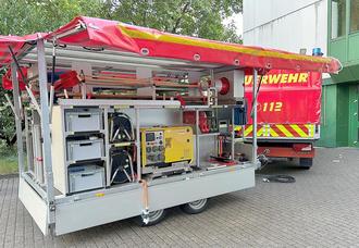 03. September - Die Feuerwehr Trier-Land verfügt seit Kurzem über zwei speziell auf die Bedarfe der Verbandsgemeinde Trier-Land ausgerichtete Anhänger „Wettergefahren“. Die Besonderheit: die Anhänger wurden in Eigenleistung von Wehrleuten der Feuerwehren Edingen-Godendorf und Zemmer angefertigt. Diese sind mit allen Gerätschaften, die es für den schnellen Einsatz bei Starkregen und Hochwasser sowie Wald- und Vegetationsbränden braucht, ausgestattet. Neben Schlauchmaterial und Strahlrohren sind u.a. Beleuchtungsmaterial und ein Stromaggregat an Bord. Weiterhin gibt es verschiedene Tauch- und Schmutzwasserpumpen sowie zahlreiches Absperrmaterial. Im Falle eines Einsatzes bieten sie damit den Vorteil, schnell, flexibel und zielgerichteter einsetzbar zu sein. Die Kosten belaufen sich auf ca. 40.000 Euro pro Anhänger.