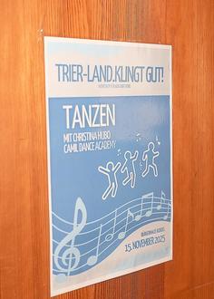 15. November – Workshop für Musiknachwuchs: Mit viel Freude und Elan waren 33 Kinder beim Musikworkshop der Stiftung „Musikjugend Trier-Land“ unter dem Titel „Trier-Land. Klingt gut!“ mit von der Partie. Der Samstagvormittag begann mit einer humorvollen und „bewegten“ Begrüßungsrunde. Während der Workshop-Phase konnten sich die jungen Teilnehmerinnen und Teilnehmer nach dem Rotationsprinzip in Tanz, Gesang und Percussion ausprobieren.