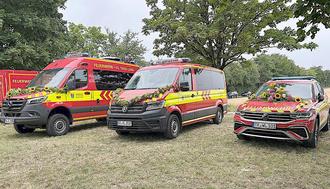 6. Juli - Einsegnung neuer Feuerwehrfahrzeuge: Die Sirzenicher Feuerwehrkameraden freuen sich über das neue Mannschaftstransportfahrzeug (ELW light) mit entsprechendem Anhänger „Tierrettung“. Das Fahrzeug dient künftig als Einsatzleitwagen und als Fahrzeug für die Tierrettung in Trier-Land. Die Gesamtkosten liegen bei rund 90.000 Euro. Bis zur Fertigstellung des Brand- und Ausbildungszentrums in Newel wird zudem der Einsatzleitwagen (ELW 1) als Fahrzeug der VG-Führungsstaffel am Standort Sirzenich stationiert. Die Einsegnung fand im Rahmen des 100jährigen Bestehens der Feuerwehr Sirzenich statt, bei der ebenfalls der neue Kommandowagen (KdoW) der Wehrleitung Trier-Land eingesegnet wurde.