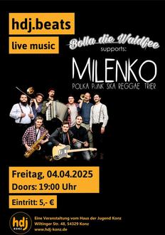 Beim nächsten hdj.beats-Konzertabend spielen für Euch „Milenko“ aus Trier und „Bolla die Waldfee“ aus Wawern.