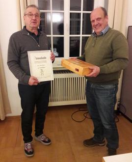 Im Rahmen der Mitgliederversammlung Anfang März haben die Mitglieder des Imkervereins 1907 Konz e.V. Herrn Albert Walter zu ihrem Ehrenvorsitzenden ernannt. In seiner Laudation führte der amtierende Vorsitzende, Andreas Reichart, aus, dass man einstimmig im Vorstand beschlossen habe, Albert Walter, durch Ernennung zum Ehrenvorsitzenden für seine Leistungen und Verdienste um die Imkerei auszuzeichnen. Herr Walter war von 2014-2021 Vorsitzender des Vereins und habe in seiner Amtszeit den Konzer Verein mit Verve geführt. Die Planung, Finanzierung und Errichtung des Lehrbienenhauses am Roscheider Hof, die Etablierung des Wildbienenpfades und auch die Gewinnung vieler neuer Imkerinnen und Imker für den Verein sei sein Verdienst. Der Imkerverein 1907 Konz e.V. stehe mit rund 120 Mitgliedern „ur-gesund“ da. In Anbetracht dieser Leistungen übergab Andreas Reichart dem neuen Ehrenvorsitzenden eine Urkunde und ein kleines Präsent unter brausendem Applaus der Mitgliederversammlung. Albert Walter bedankte sich in seiner gewohnt bescheidenen Art bei der Versammlung. Er wies in seiner Dankesrede darauf hin, dass er diese Auszeichnung auch stellvertretend für viele andere Imkerinnen und Imker des Vereins entgegennehme. Jeder hab mal mit angepackt und zum Erfolg beigetragen. Vereinsarbeit sei ein Teamspiel, und der Konzer Verein beherrsche dies meisterhaft. Damit verfügt der Imkerverein Konz nun - neben Joachim Schumann - über einen weiteren Ehrenvorsitzenden. Der Verein hofft, dass sich beide mit ihrer Erfahrung und ihrem Wissen weiter im Verein einbringen werden.