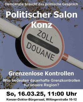 Diesen Fragen will der Politische Salon am Sonntag, 16. März um 11 Uhr im Konzer-Doktor-Bürgersaal, Wiltinger Str. 10-12 unter dem Thema „Grenzenlose Kontrollen? Was bedeuten dauerhafte Grenzkontrollen für unsere Region?“ nachgehen.