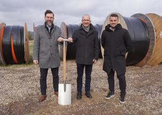 Foto: Zum symbolischen Spatenstich zum Breitbandausbau in Konz kamen zusammen (v. l.): Westenergie-Kommunalmanager Christian Nathem, Bürgermeister Joachim Weber und Westnetz-Mitarbeiter Dominik Bosl