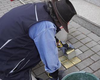 Künstler Gunter Demnig, der die europaweite Initiative der Stolpersteine vor vielen Jahren ins Leben rief, ließ die Messingsteine persönlich in den Boden ein.