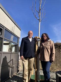 Geschäftsführerin der Kulturgiesserei, Frau Dr Anette Barth, war sehr erfreut über das neuerliche Zeichen der guten Zusammenarbeit der Gesellschaft für Sicherheitspolitik (GSP) und der Kulturgiesserei Saarburg und nahm gerne die Pflanzung mit dem Vertreter der GSP Herrn Manfred Orth vor.