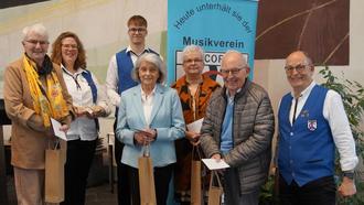 Anschließend wurden verdiente Musikerinnen und Musiker für ihr langjähriges Engagement geehrt: Für 30 Jahre Katharina Guntermann und für 10 Jahre Max Sauerwein.