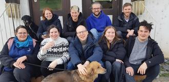 Auf den Hund gekommen: Die Schauspieler:innen der Theaterwerkstatt Konz. Untere Reihe v. l.: Karen und Tanja Lebowski, Wolfgang Zerbe, Finia Wiens, Christian Leisen. Obere Reihe: Lea Fleischmann, Mareike Wiens, Michel Kickert und Torge Staegemann.