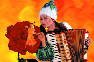 Dargestellt von einer Schauspielerin mit Akkordeon und Klarinette sowie einem Figurenspieler des l´UNA Theaters.