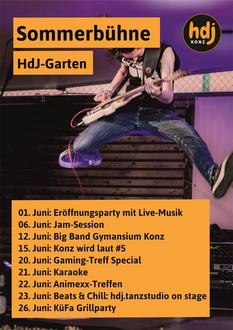 Im Juni werden wir euch wieder eine Open-Air-Bühne im HdJ-Garten bieten. Bei zahlreichen Veranstaltungen könnt ihr einfach kostenlos vorbeikommen und mit uns den Sommerbeginn feiern!