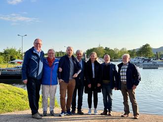 Bernhard Henter, MdL, i.R; Maria Schmitz; Verbandsgemeindebeigeordnete; Jens Tossing, Sportkreisvorsitzender; Bernhard Marx, Stadtbeigeordneter; Kerstin Röhlich-Pause, Stadtbeigeordnete; Gerd Haferkamp, Vorsitzender des Wassersportclubs; Wilhelm Weitzel, Stadtbeigeordneter (von l.n.r.)