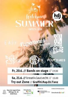 Am 20. & 21. Juni bietet das Haus der Jugend Konz ein neues Event. An zwei Tagen gibt es fantastische Live-Musik von den drei Acts „Easy“, „Papertones“ und „Sun Smash Palace“ sowie coole DJ-Sets und eine TRY OUT ZONE! Künstler bieten die Möglichkeit, Graffiti auszutesten, und zudem gibt es die Möglichkeit, Texte zu schreiben und Rappen auszuprobieren und mehr unter dem Motto „Kreativ.Laut.Ehrlich“. Zudem gibt’s verschiedene Gastrostände mit Essen und Trinken. Der Eintritt ist frei.