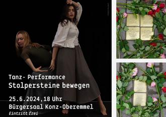 „Stolpersteine Bewegen“ ist eine Inszenierung mit Ausdruckstanz, die Stolpersteine als ‚lebendige Skulptur‘ versteht. Die Tänzerinnen des Trierer Theaters Laura Evangelisti und Beatrice Risiglione erzählen von ihren Begegnungen mit Stolpersteinen und den tragischen Biografien.